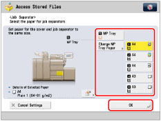 If you want to set both Add Cover and Job Separator, select the same paper size.