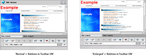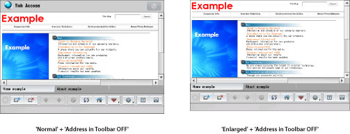 You can change how the Web Access screen is displayed to suit your needs. There are four types of screens which can be created with different combinations of the screen size and display/hide address bar settings.