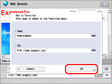 If you want to change the name of the Web page to be added, press the text field for <Name> → enter the name → press [OK].