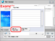 The URLs of pages displayed from a registered Page Memo are saved in the URL history.