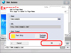 You can change the name and URL. If you change the URL, the contents of the saved screen do not change. The screen currently displayed is saved as a Page Memo.