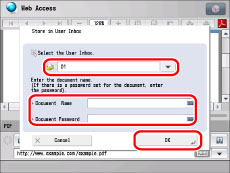 If you want to enter the Document Password, enter the correct password. If the password is entered incorrectly, the file will not be stored in the Mail Box.