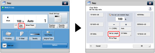 You can enter the width or length of the original size. If you enter the width for the original size, make sure to enter the width for the copy size, and vice versa.