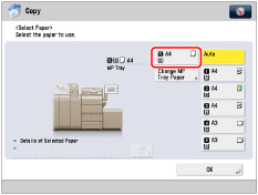 If paper is being fed from the multi-purpose tray for the current job, you can select the paper for the next job from [Change MP Tray Paper]. (See "Reserving a Copy Job Using the Multi-Purpose Tray.")