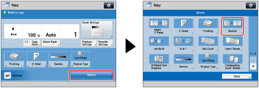 The Saddle Stitch and Divided Booklet modes can be set only if the Booklet Finisher-Q1Booklet Finisher-Q1 PRO/Booklet Finisher-N1 is attached.