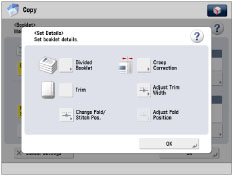 You can set [Trim] only if the Inner Booklet Trimmer-A1 is attached to the Booklet Finisher-Q1 PRO or Inner Booklet Trimmer-A1 is attached to the Booklet Finisher-N1.