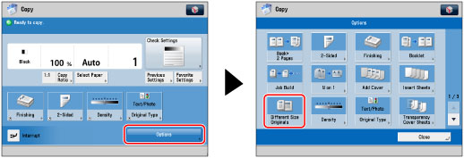 2-Sided] with [Different Size Originals], copies will be printed as one-sided copies on paper of their respective sizes. |
