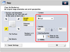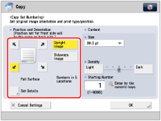 If you set [Number Option] to 'On', [Full Surface] and [Numbers in 5 Locations] is grayed out and cannot be selected. (See "Copy Set Numbering Options.")