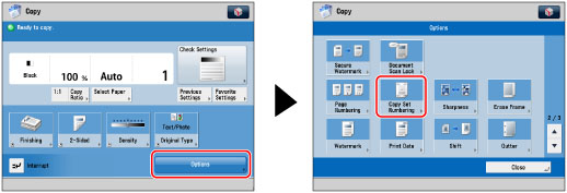 If you use [Copy Set Numbering] with [Add Cover] or [Insert Sheets], numbers will not be printed on the inserted pages.
