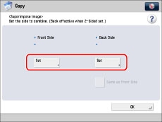To specify the same settings as <Front Side> for <Back Side>, press [Same as Front Side].