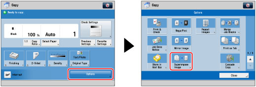 To use the Superimpose Image mode, the image form must be registered in the machine beforehand. (See "Registering Forms for the Superimpose Image Mode.")