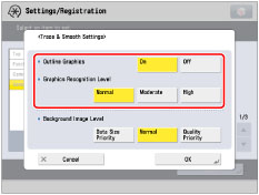 Select [On] for <Outline Graphics> → specify the settings for <Graphics Recognition Level>.