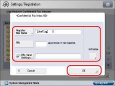 You can set and register a name and PIN for any Confidential Fax Inbox. You can also initialize the registered name and PIN.