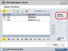 Press [Set Destination] → [Register Destinations] → [Register New Dest.].