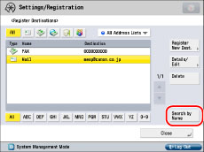 If [All Address Lists] is selected in the Address Book drop-down list, the destinations registered in one-touch buttons are also displayed. However, you cannot delete destinations registered in one-touch buttons. For instructions on deleting one-touch buttons, see