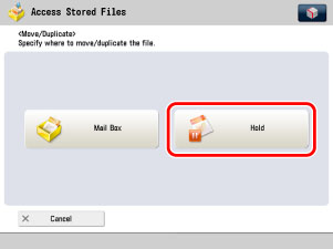 You cannot move or duplicate files in the Fax/I-Fax Inbox, Advanced Space, Advanced Space of another imageRUNNER ADVANCE machine on the network, or memory media to the Hold Queue.