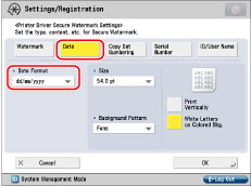 If [Printer Driver Secure Watermark] and [Forced Secure Watermark] are set for a printer at the same time, Forced Secure Watermark is given priority.
