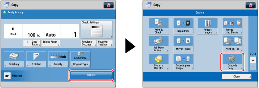 Press [Options] → [Cascade Copy].