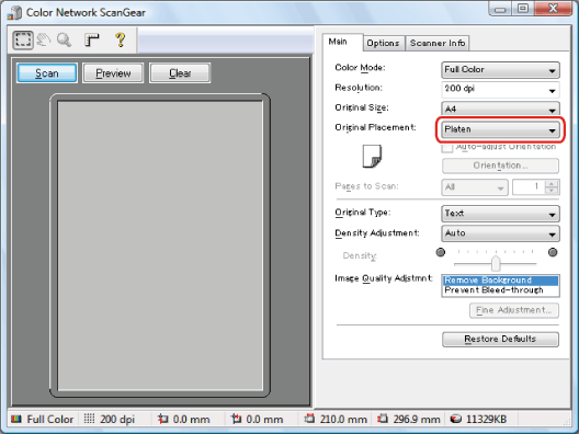 If you are using Network ScanGear for the first time after installing it, the network scanner to be used must be selected with the ScanGear Tool. For details, see "Selecting the Scanner."
