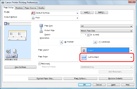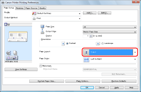 If you cannot select the options for [Page Layout], display the [Device Settings] tab, and then select [Auto] or [Enabled] from [Spooling at Host]. For instructions on how to display the [Device Settings] tab, see "Setting the Printer Options."