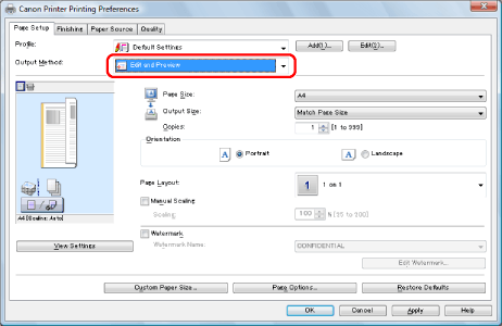 For details about the Canon PageComposer settings, see the Canon PageComposer online help.