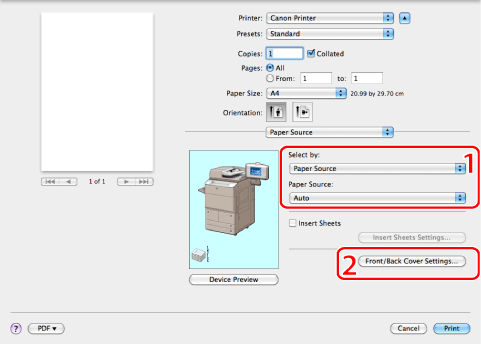 When you want to print on a specific type of paper, specify the paper source containing the paper, or the paper type.