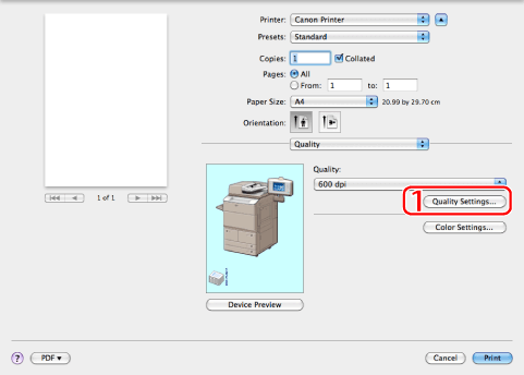 Enables you to configure settings relating to print quality.