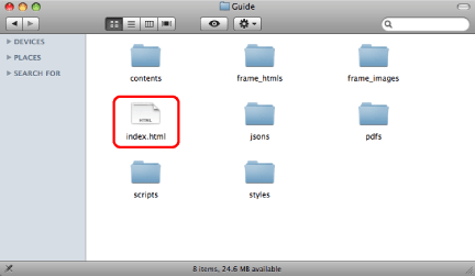 In the installation folder, double-click [Documents] → [Guide] → "index.html" icon.