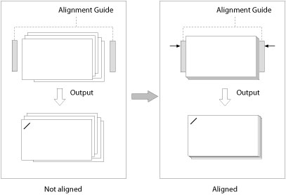 The copied or printed paper may shrink because of temperature, humidity, or a characteristic of the paper type. In this case, this mode enables you to align copied or printed papers by adjusting the position of the alignment guide inside the finisher so as to staple the aligned papers.