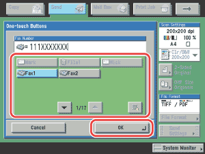 - If you cancel manual sending during transmission, the pages that have already been scanned are sent. You can check how many pages have been sent to the destination by printing a Fax Activity Report, or on the Log screen for Fax on the System Monitor screen.