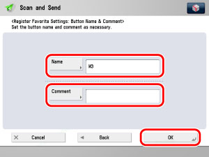 Press [Name] and [Comment] → enter the name and comment → press [OK].
