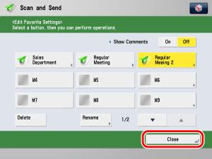 If you want to edit the name or comment for the registered button, press [Rename] → edit desired setting.