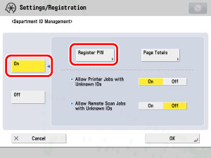 If you selected [On] in step 2, pressing [OK] activates Department ID Management.