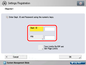 → [Management Settings] → [User Management] → [Department ID Management].