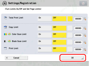 <Color Scan Limit> and <Black Scan Limit> are not included in the Total Print Limit.