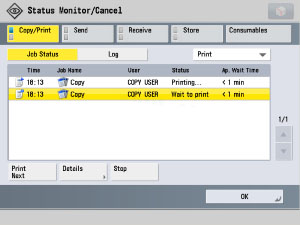 For instructions on checking the status of Copy, Fax, and Send jobs, see "Status Monitor/Cancel."