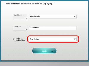 Regardless of the items displayed in the Login Destination drop-down list, the domain which the machine belongs to is displayed at the top of the list, and [This device] is displayed at the bottom of the list.