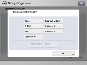 → [Set Destination] → [Register LDAP Server] → [Register/Edit LDAP Search].