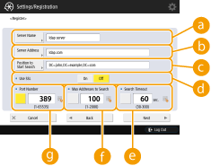 When entering the IP address, check if the usable DNS server supports only forward lookup. When the DNS server supports forward lookup only, press <Do Not Use> or <Use> in <Authentication Information> in step 4. When selecting <Use (Security Auth.)>, confirm that the DNS server supports reverse lookup.