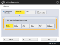 <LDAP Server Version and Character Code>Select a combination of the LDAP version of the server and character code.