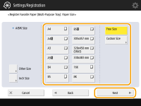 If you register the paper size you use frequently on buttons <S1> to <S5>, you can call them up with one touch. Registering Free Size Paper (Custom Size Paper)