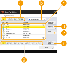 Select <Personal Address List>, <Address List 1> to <Address List 10> or <Address List for Admin.> to filter the destinations to be displayed in the address list.