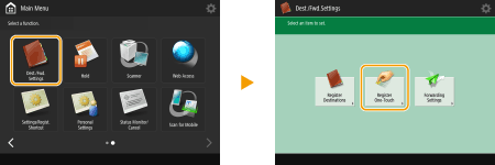 <Register One-Touch> select the one-touch button you want to register press <Register/Edit> <LDAP Server> and search for destinations using <Search by Conditions> or <Search by Name>. After confirming the settings of the destination, press <One-Touch Name> enter the one-touch name to be displayed press <OK>.If the time setting between the LDAP server and the machine differs by five minutes or more, a search cannot be performed.