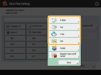 It is convenient to register a frequently used destination in a one-touch button. This enables you to quickly specify a destination with the simple press of a button. In addition to registering a fax number or e-mail address in a one-touch button, you can also register a file server folder location (IP address and path) to use when storing scanned data.