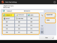 If you want to edit the settings of the one-touch button, press <Register/Edit>. For details about how to edit the settings, see step 6 in