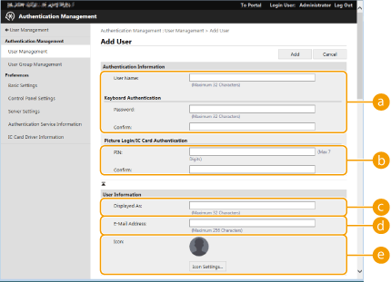 <Management Settings> <User Management> <Authentication Management> <Register/Edit Authentication User>. <Authentication Management>Creating user groups