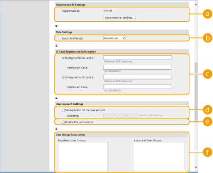 Address Lists in the Address Book can be shared between users who are registered in a user group (Registering Destinations via the Remote UI). To create a user group, click [User Group Management]