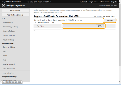 To delete a CRL, select the one that you want to delete, and click [Delete]
